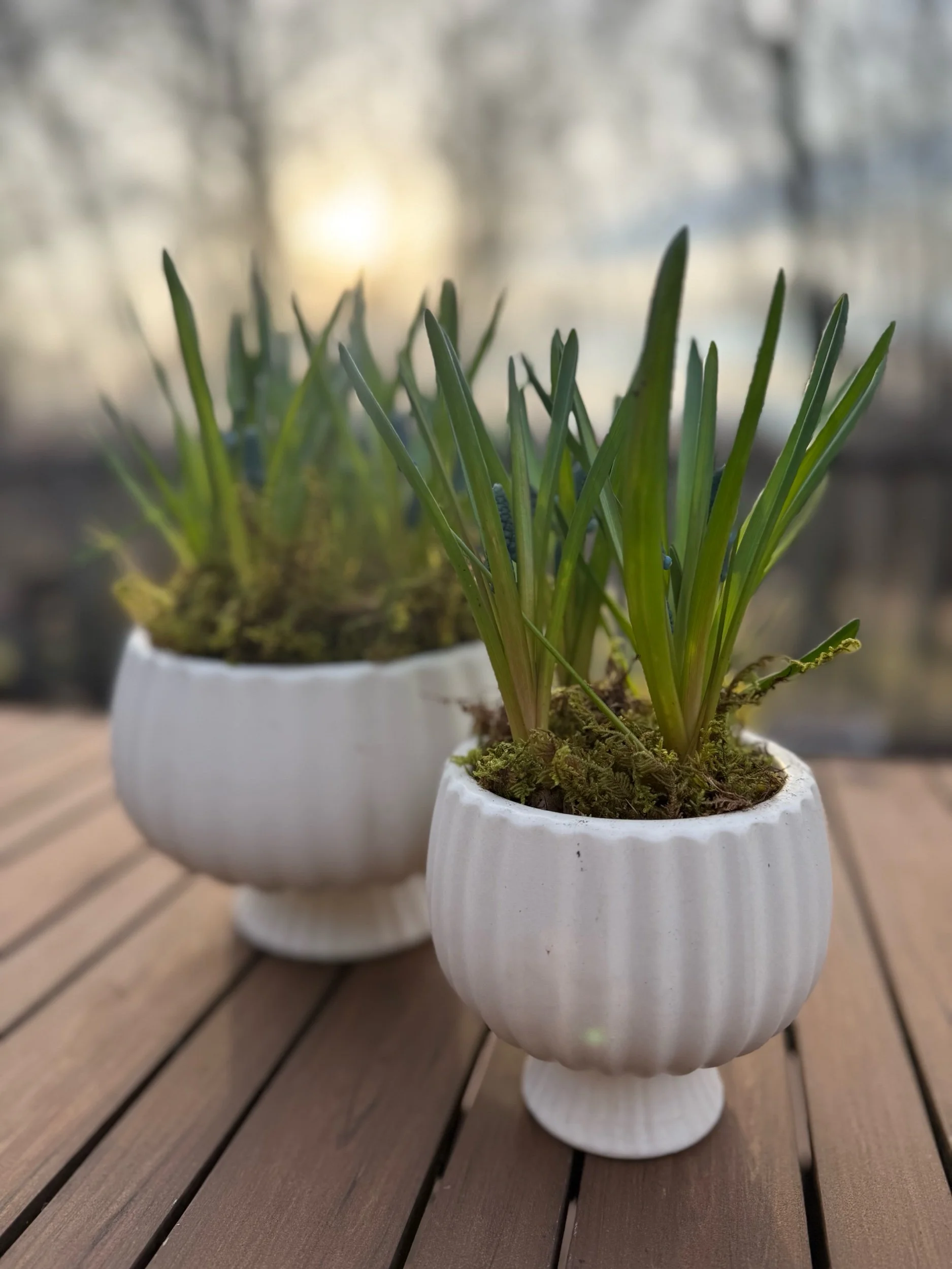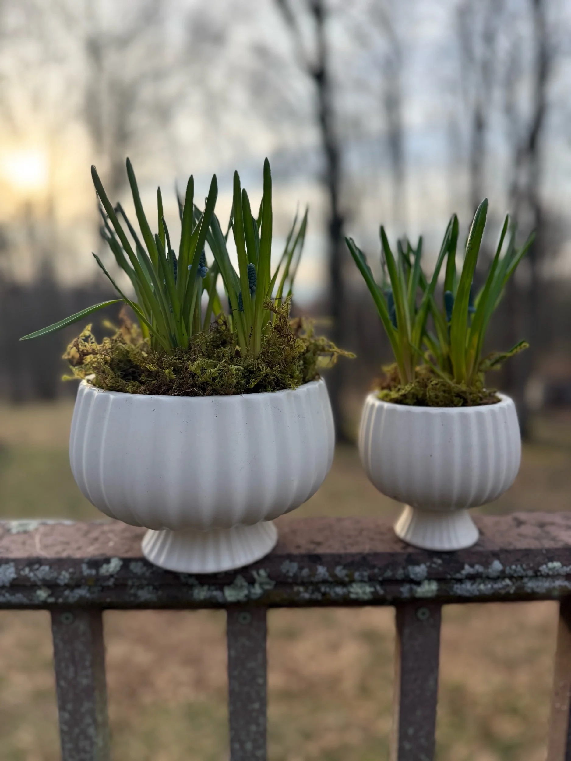 Sweet, fluted compotes featuring perennial spring bulbs that you can plant in your garden after blooming!
