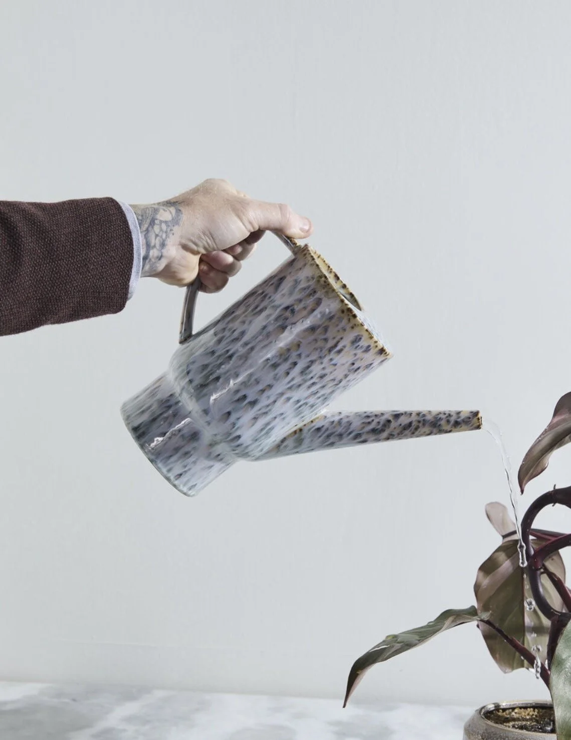 Speckled glaze for a unique vessel, these watering cans are functional decor at its best.