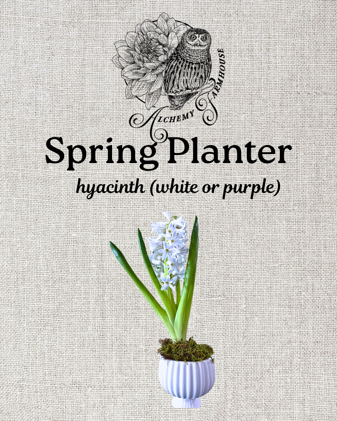 Sweet, petite ceramic compote with hyacinth bulb in moss.