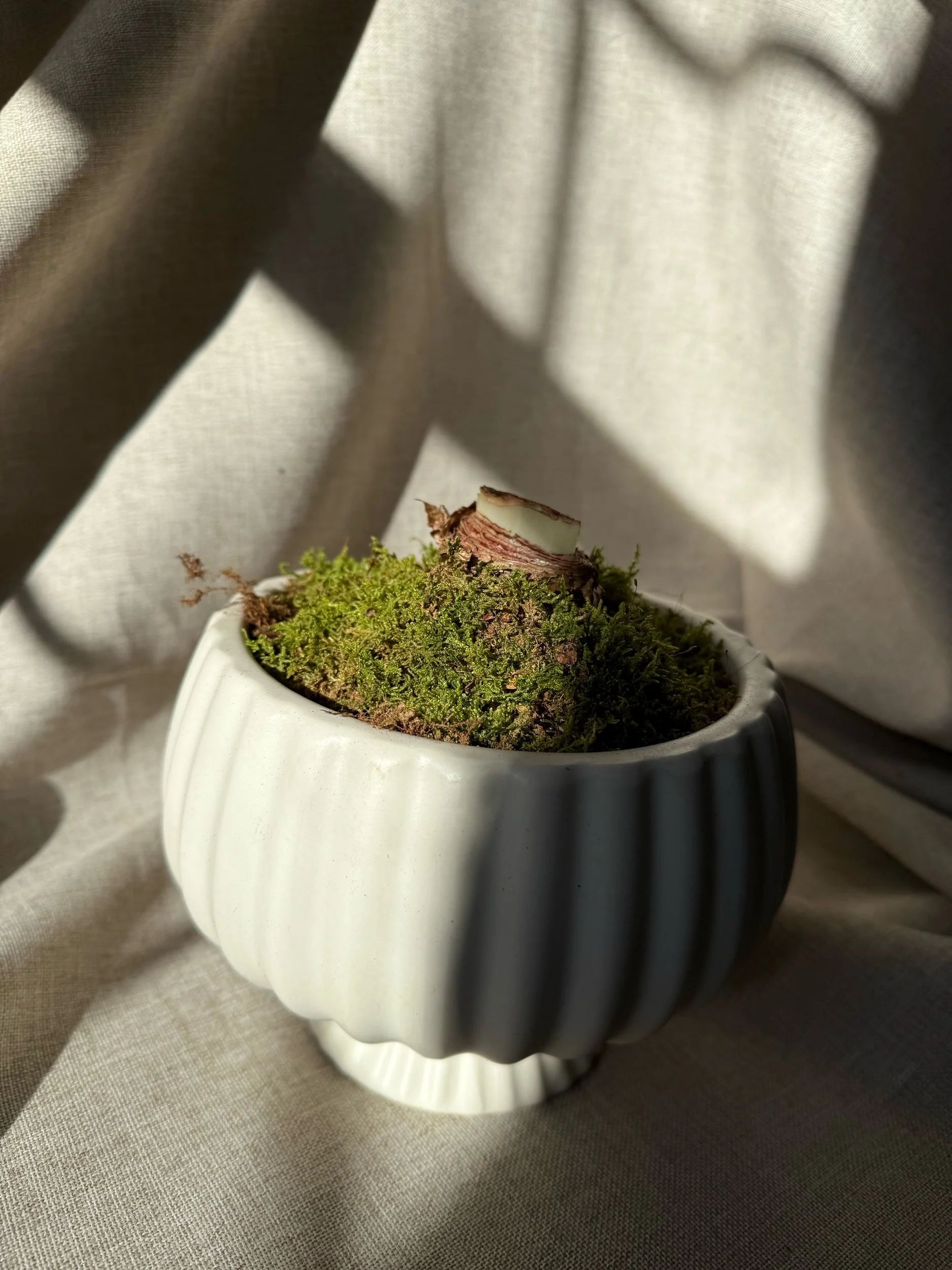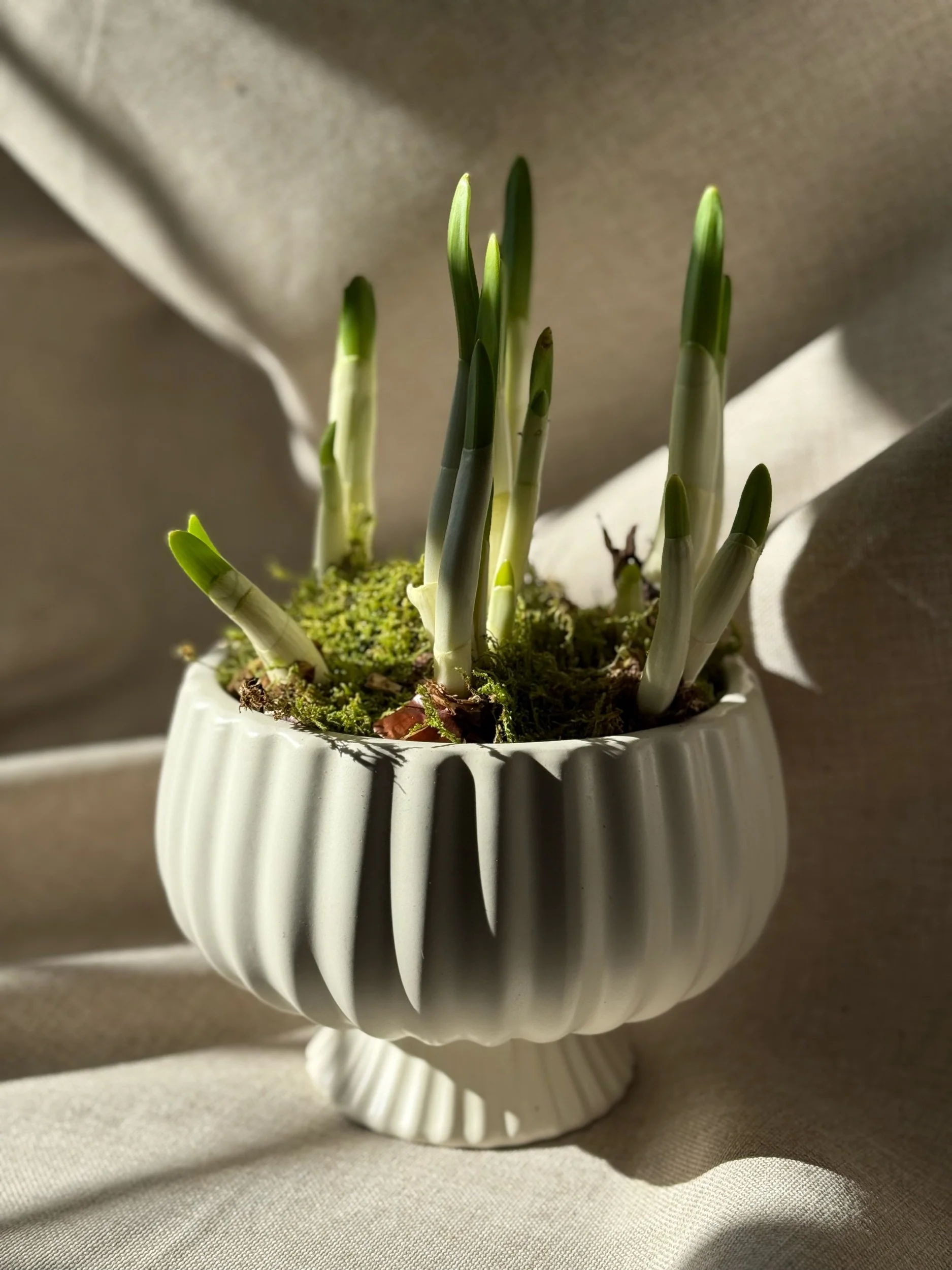 Clustered in ceramic compotes, our potted paperwhites are the perfect holiday flower to adorn your home, gift to a teacher, co-worker or loved one. More paperwhite options in glass & vintage vessels, are also coming soon in December.