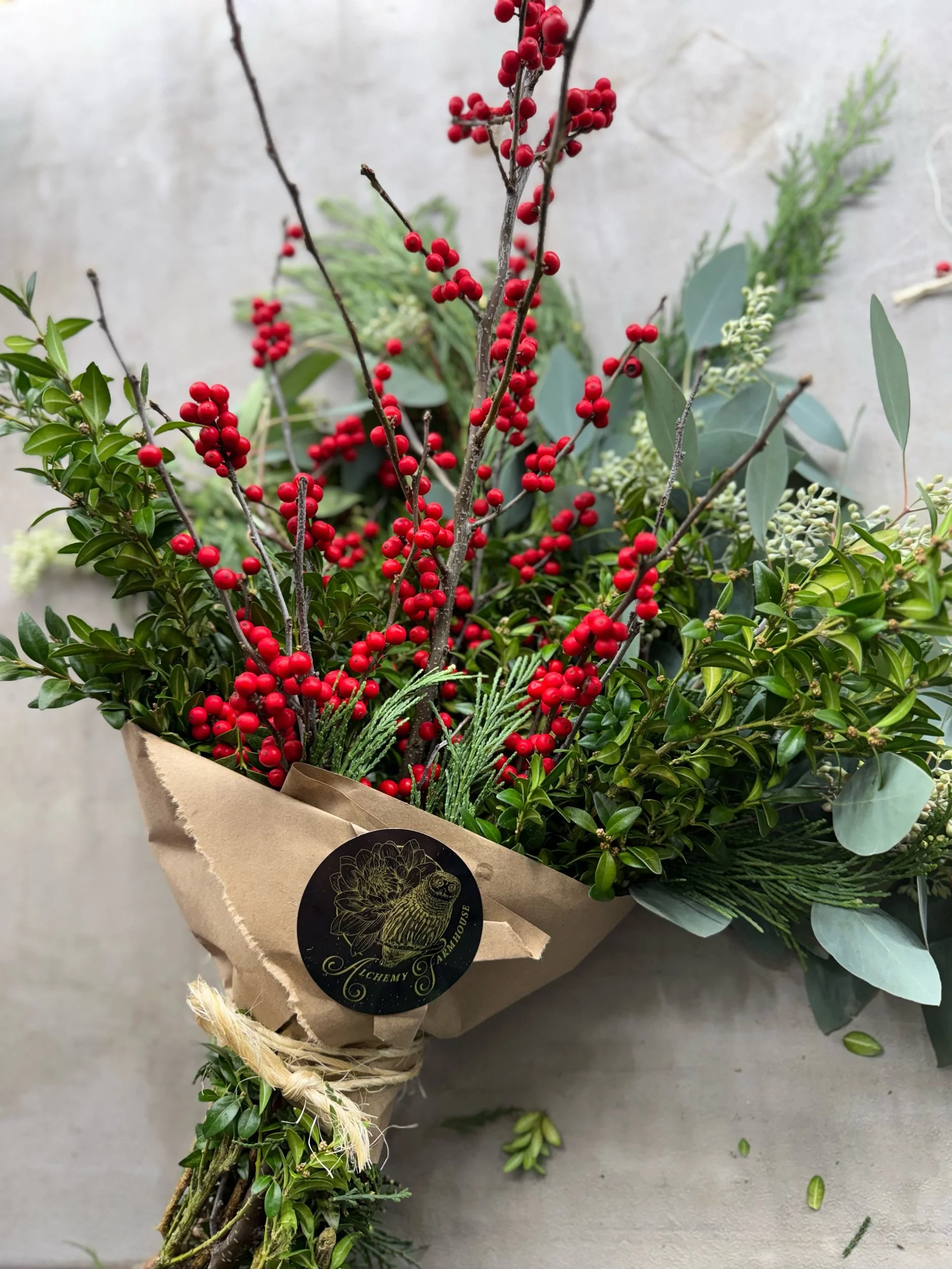 Festive Greens & Winterberry bunches, perfect for gifting, hosting or decorating at home.